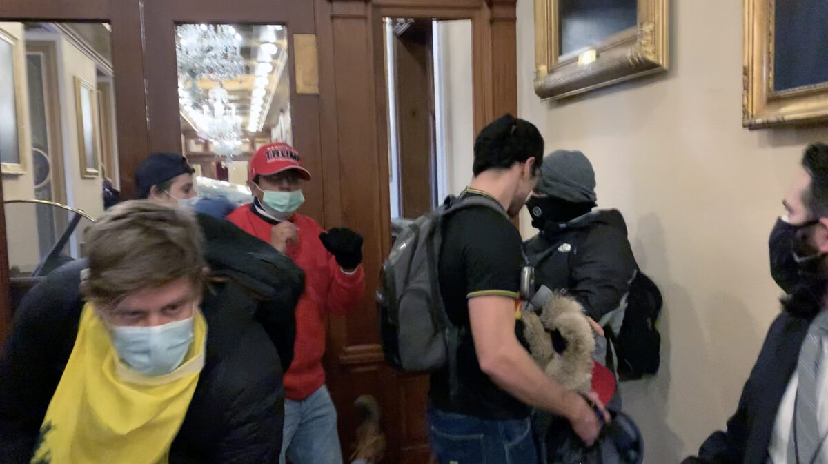 Most of the violence against the doors and windows outside the Speaker’s Lobby happened after three police officers guarding the doors left their post about 2:42 p.m. on Jan. 6, 2021.