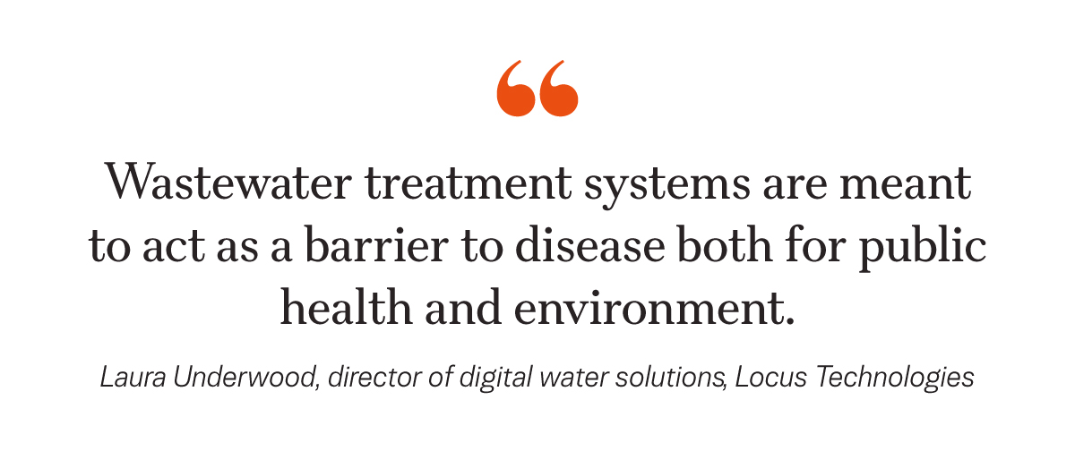 “Wastewater treatment systems are meant to act as a barrier to disease both for public health and environment,“ Laura Underwood, director of digital water solutions for Locus Technologies, told The Epoch Times. ”If you have overflows or failures, these events can release pathogens into waterways and increase the risk of gastrointestinal illnesses, skin infections, and contamination of recreational or drinking waters.”
