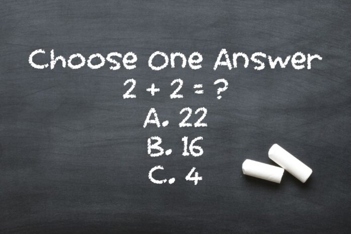 Multiple-choice tests undermine true mastery; real competence is proven through written problem-solving, not guessing, leading to flawed student assessment.