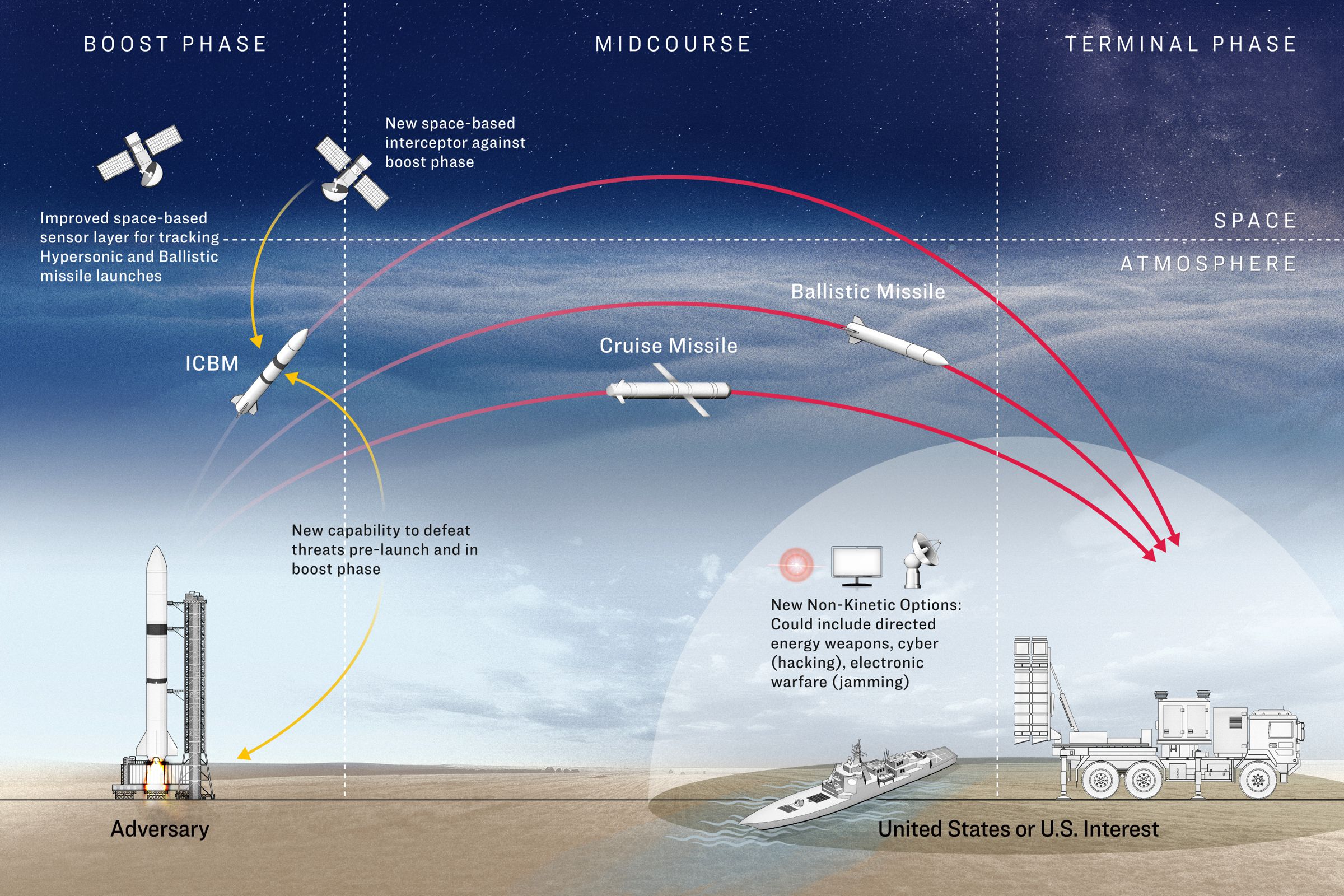Trump has also tasked military leaders with conceiving new ways to stop incoming threats earlier than ever before, including before they launch.