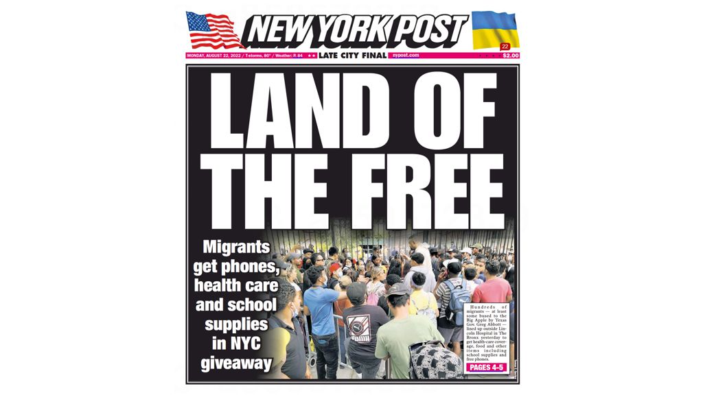 Hundreds of migrants — at least some bused to the Big Apple by Texas Gov. Greg Abbott — lined up outside Lincoln Hospital in The Bronx yesterday to get health-care coverage, food and other items including school supplies and free phones.