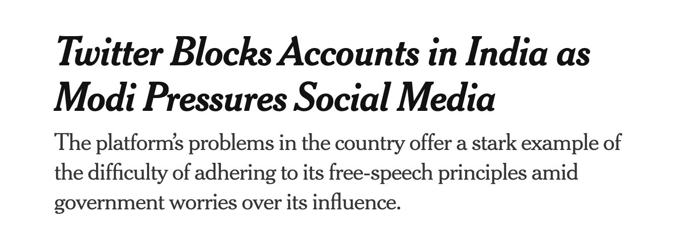 24. In early February 2021, Prime Minister Narendra Modiās government threatened to arrest Twitter employees in India, and to incarcerate them for up to seven years after they restored hundreds of accounts that had been critical of him.