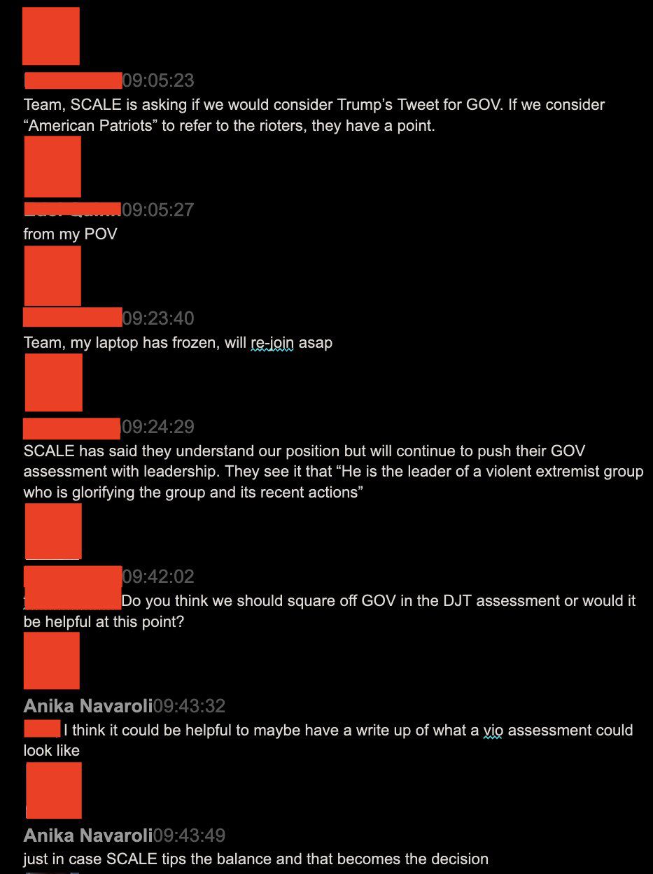 15. āI also am not seeing clear or coded incitement in the DJT tweet,ā wrote Anika Navaroli, a Twitter policy official. āIāll respond in the elections channel and say that our team has assessed and found no viosāāor violationsāāfor the DJT one.ā pic.twitter.com/DnJk2UUuf6