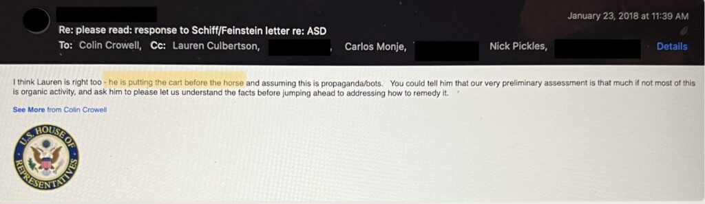 20.When Twitter spoke to a Blumenthal staffer, they tried to “wave him off” because “we don’t believe these are bots.” pic.twitter.com/0VGdFRkkOi