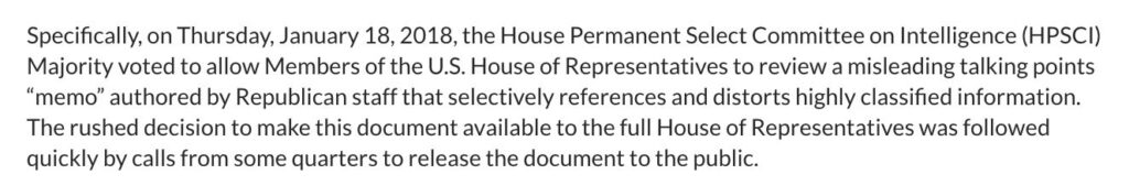 9b. Feinstein/Schiff said the Nunes memo “distorts” classified information, but note they didn’t call it incorrect. pic.twitter.com/3ZMVM6XH9p